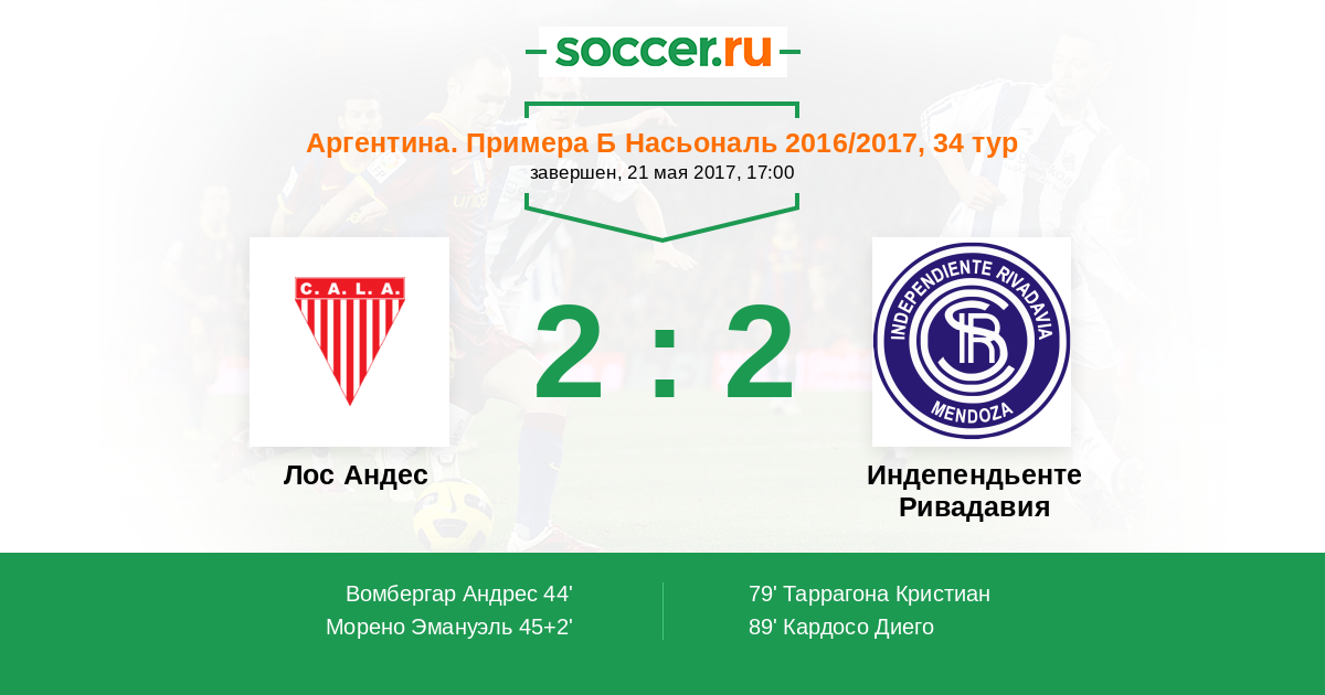 Протокол матча Лос Андес против Индепендьенте Ривадавия