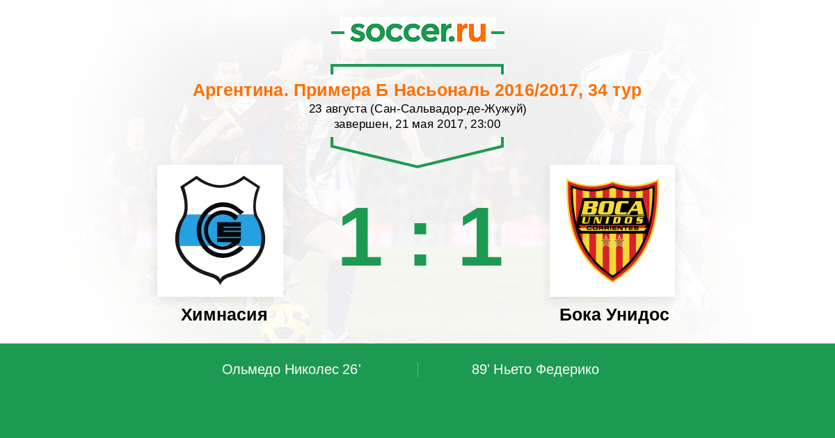 Протокол матча Химнасия против Бока Унидос