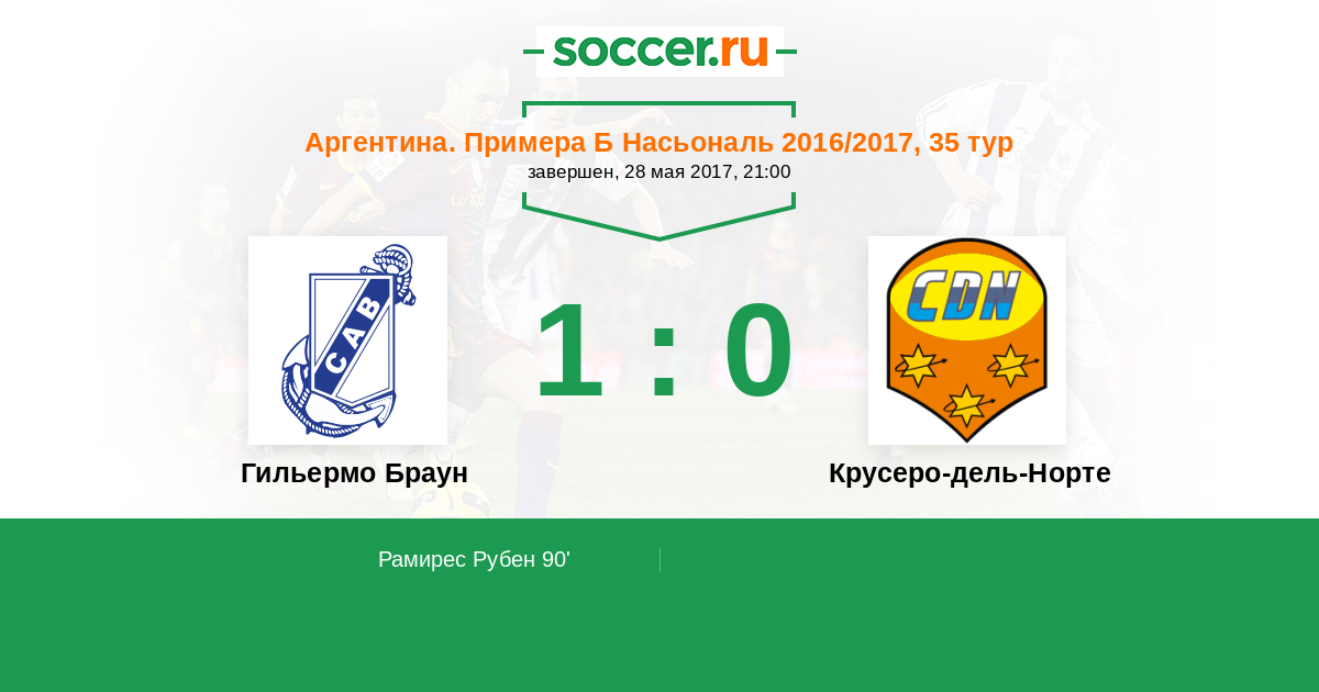 Протокол матча Гильермо Браун против Крусеро-дель-Норте