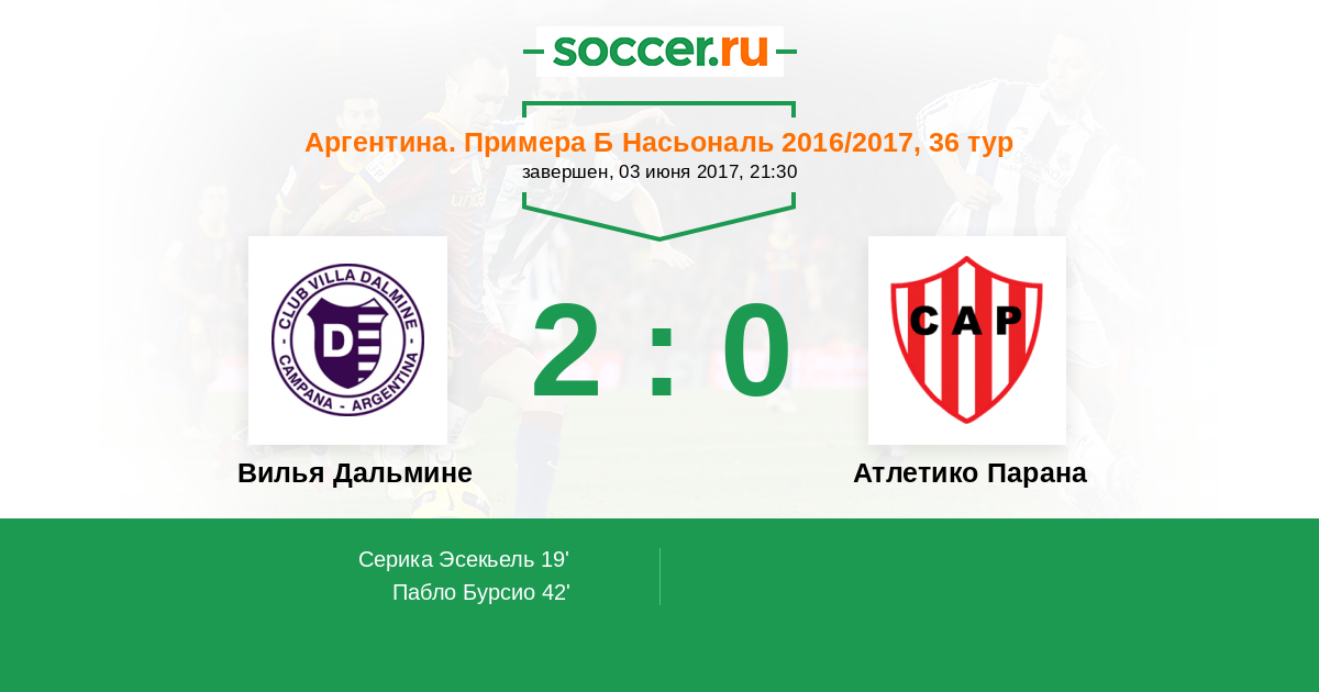 Протокол матча Вилья Дальмине против Атлетико Парана
