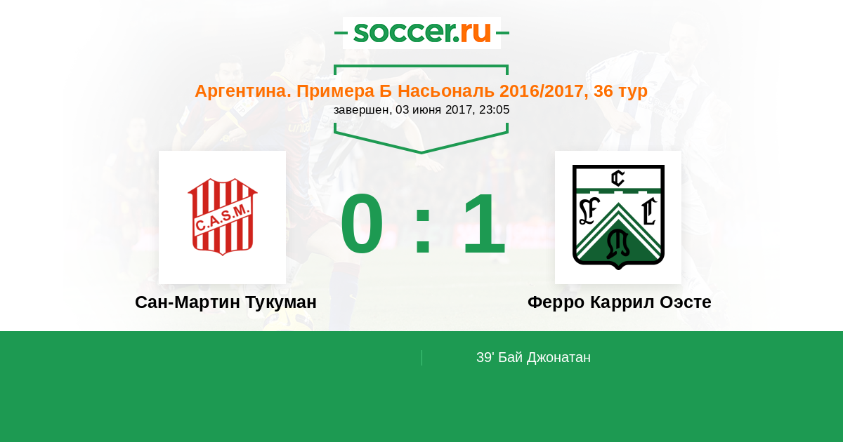 Протокол матча Сан-Мартин Тукуман против Ферро Каррил Оэсте