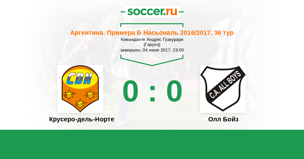 Протокол матча Крусеро-дель-Норте против Олл Бойз