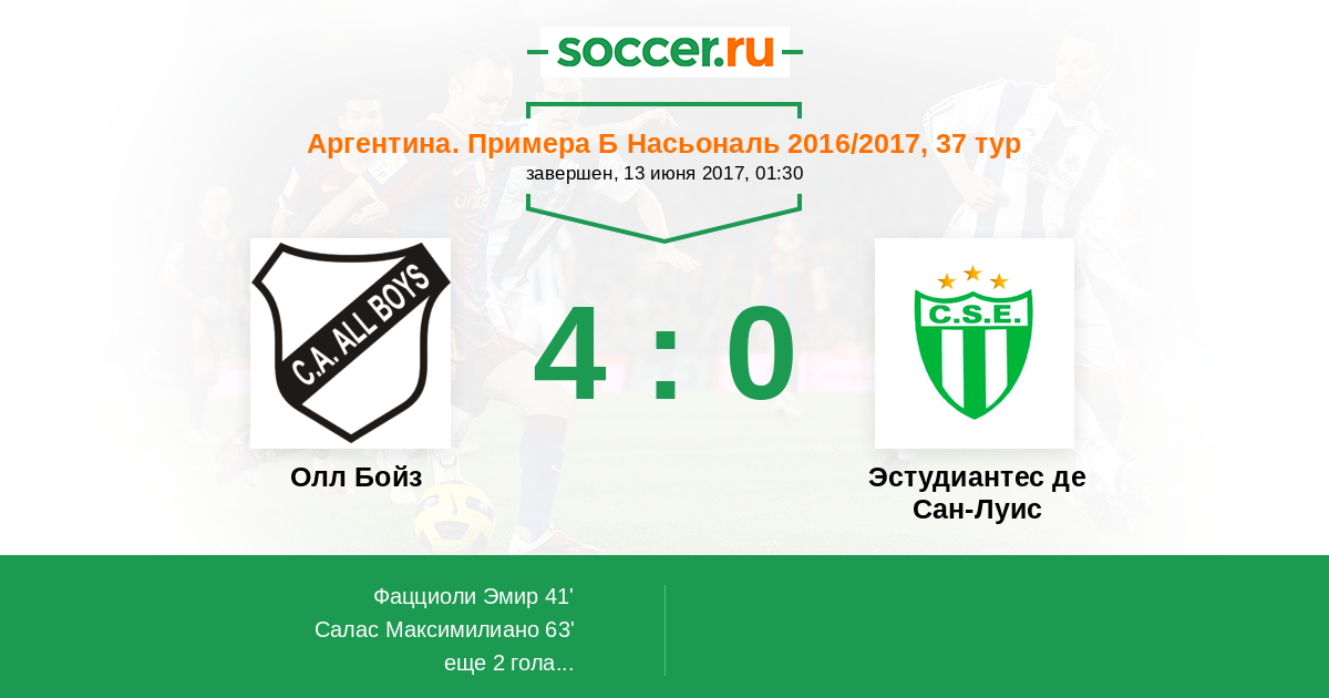 Протокол матча Олл Бойз против Эстудиантес де Сан-Луис