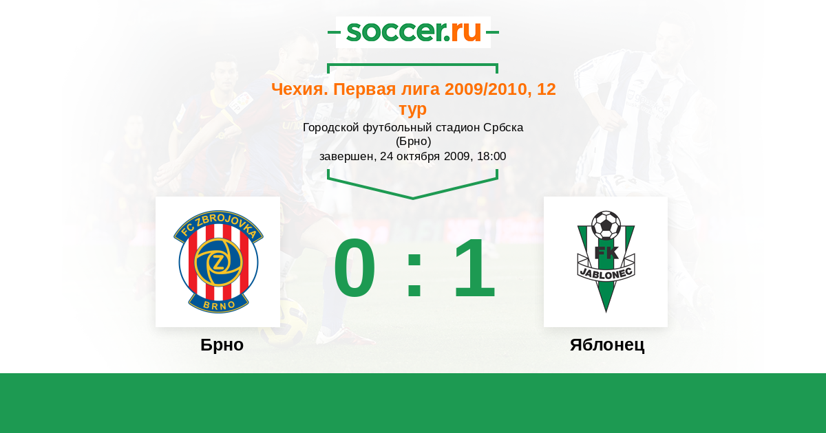 Чехия. Первая Лига 19.07.2010 Яблонец Логотип футбольный клуб Яблонец (Яблонец-над-Нисоу) 1:0 Логотип футбольный клуб Брно Брно