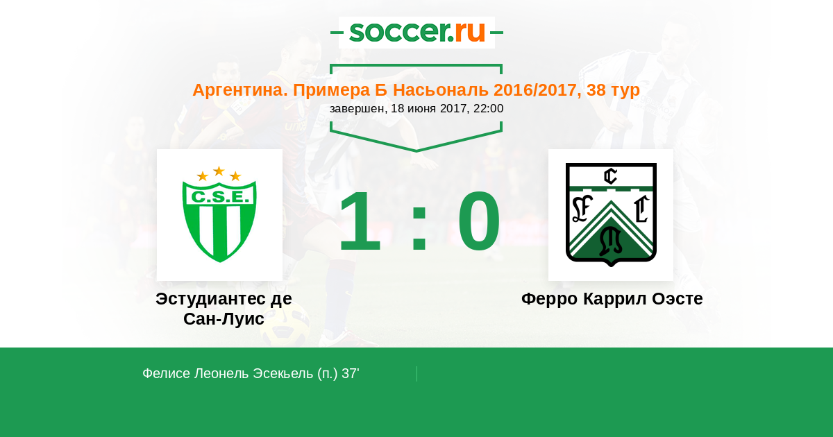Протокол матча Эстудиантес де Сан-Луис против Ферро Каррил Оэсте