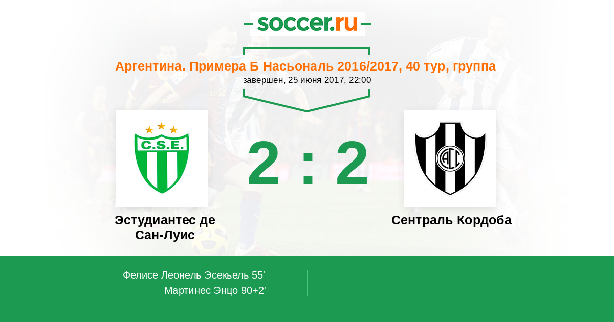 Протокол матча Эстудиантес де Сан-Луис против Сентраль Кордоба