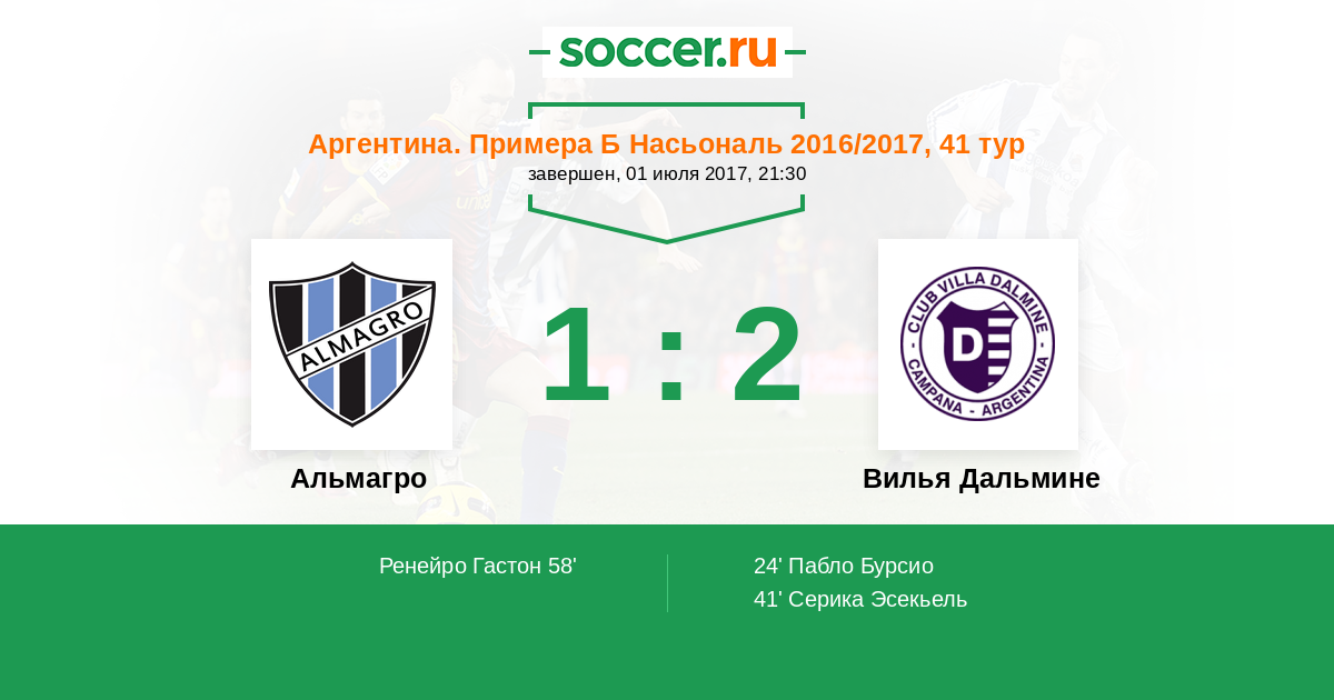 Протокол матча Альмагро против Вилья Дальмине