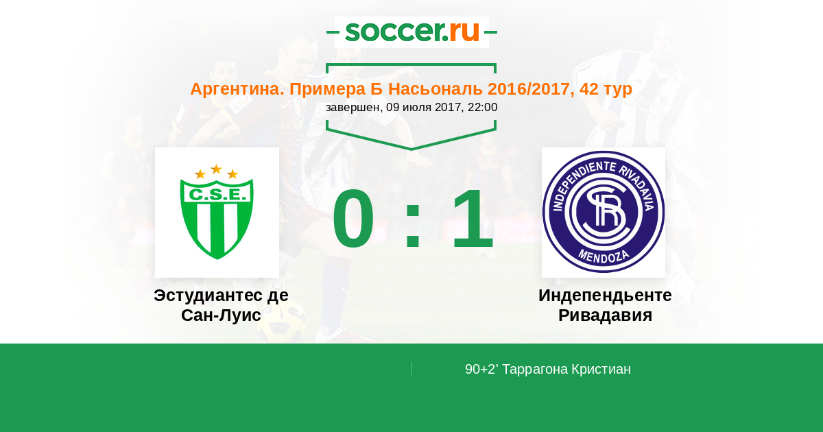 Протокол матча Эстудиантес де Сан-Луис против Индепендьенте Ривадавия