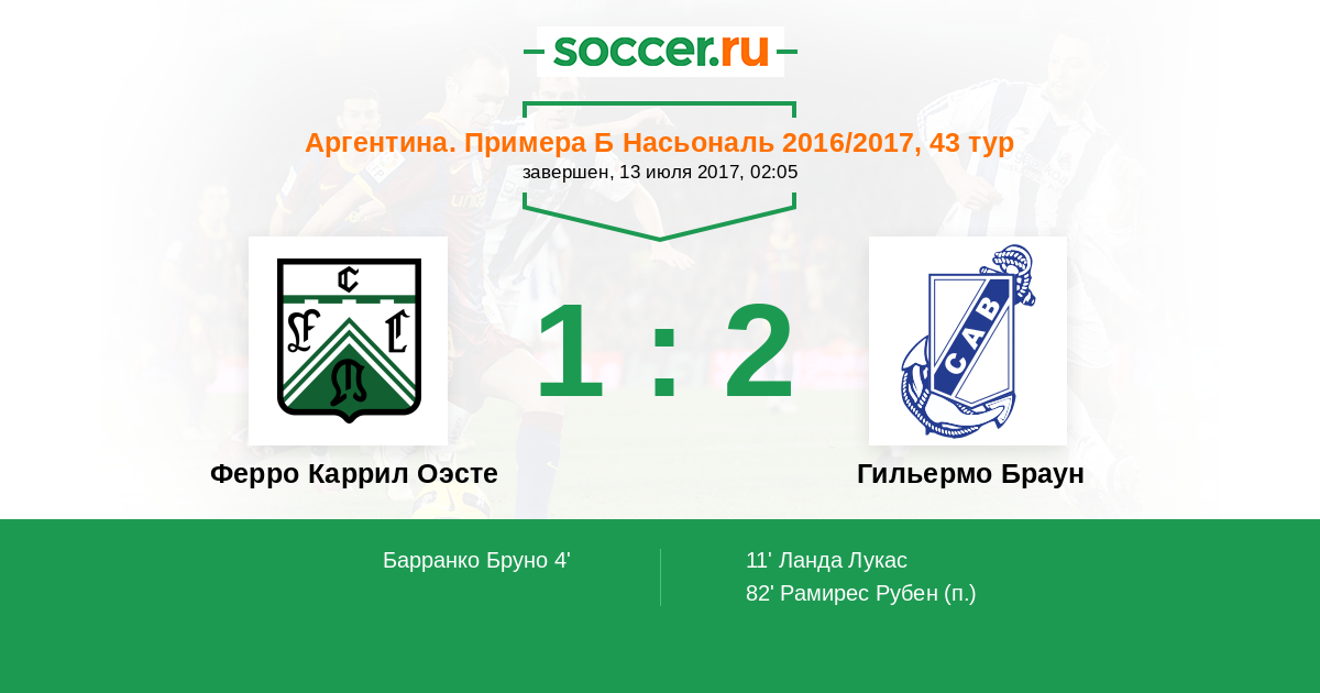 Протокол матча Ферро Каррил Оэсте против Гильермо Браун
