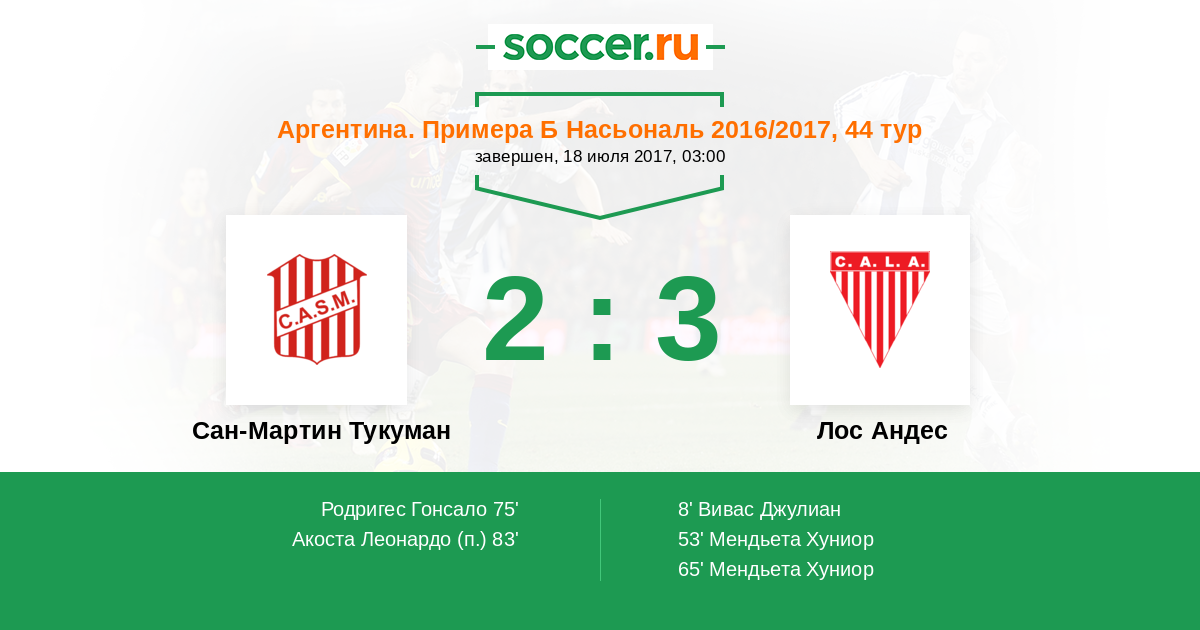 Протокол матча Сан-Мартин Тукуман против Лос Андес