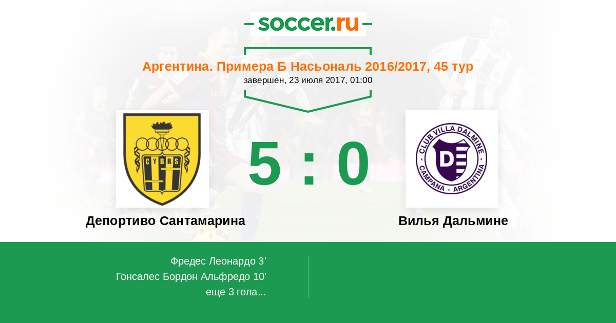 Протокол матча Депортиво Сантамарина против Вилья Дальмине
