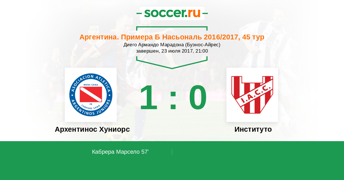 Протокол матча Архентинос Хуниорс против Институто