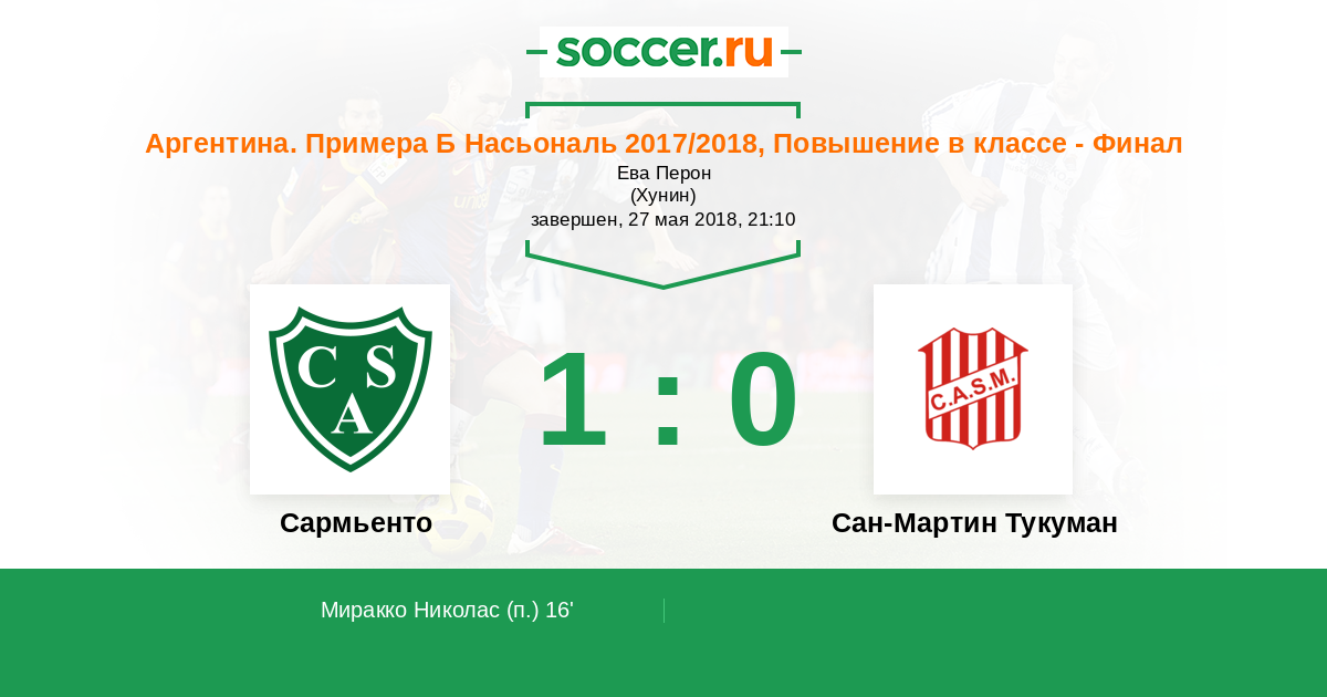 Протокол матча Сармьенто против Сан-Мартин Тукуман