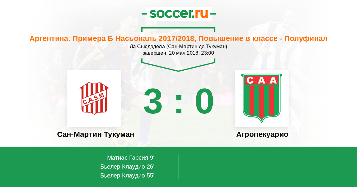 Протокол матча Сан-Мартин Тукуман против Агропекуарио
