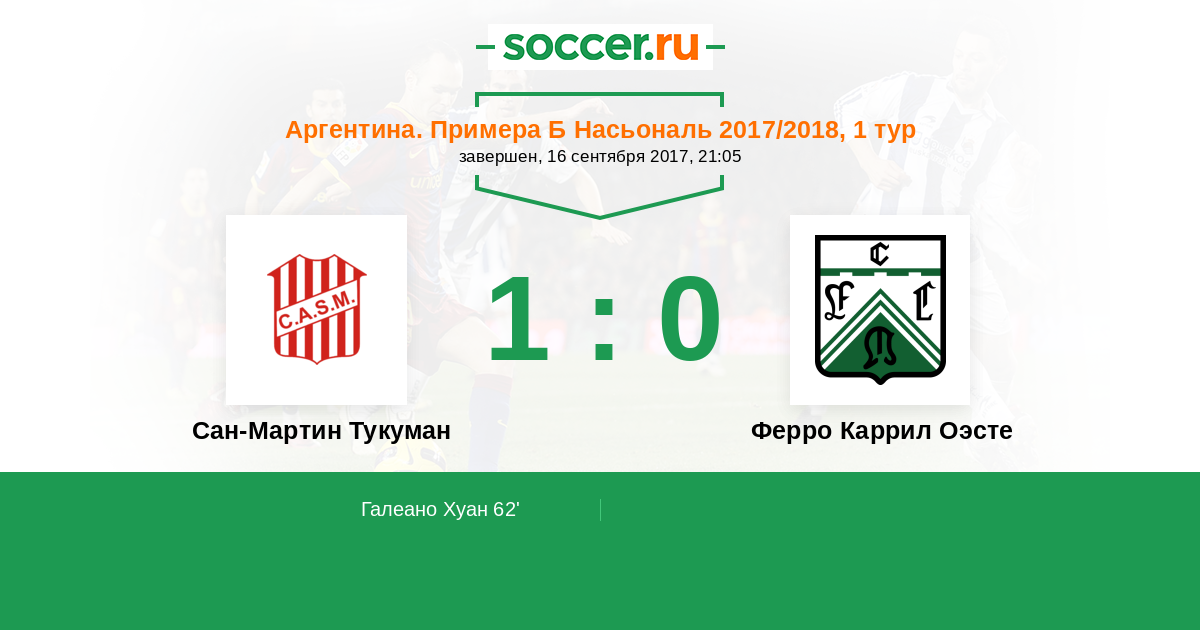 Протокол матча Сан-Мартин Тукуман против Ферро Каррил Оэсте