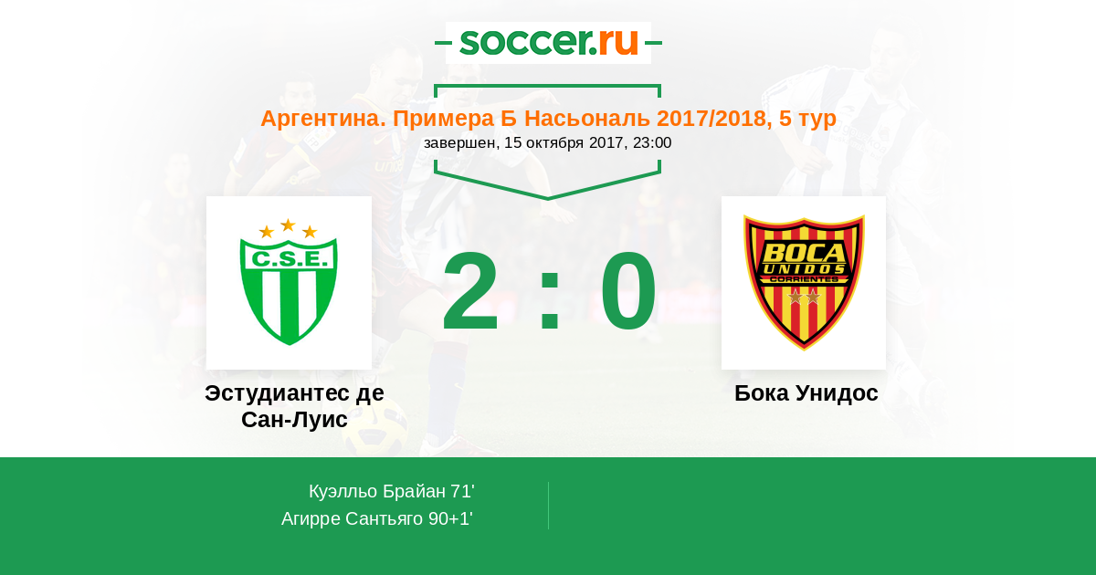 Протокол матча Эстудиантес де Сан-Луис против Бока Унидос