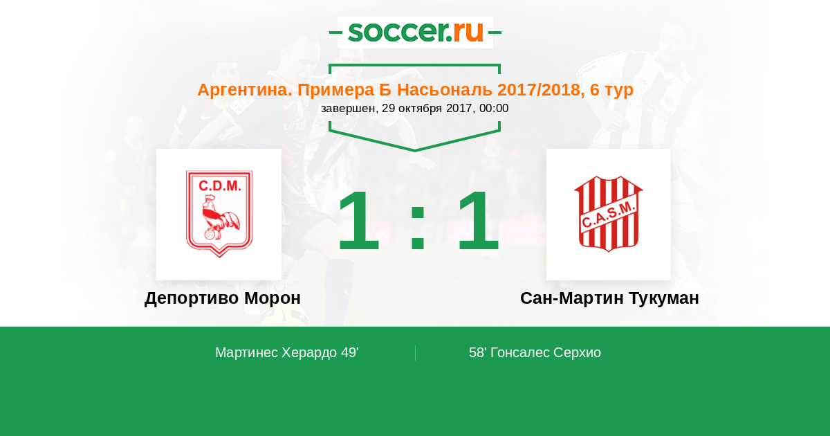 Протокол матча Депортиво Морон против Сан-Мартин Тукуман
