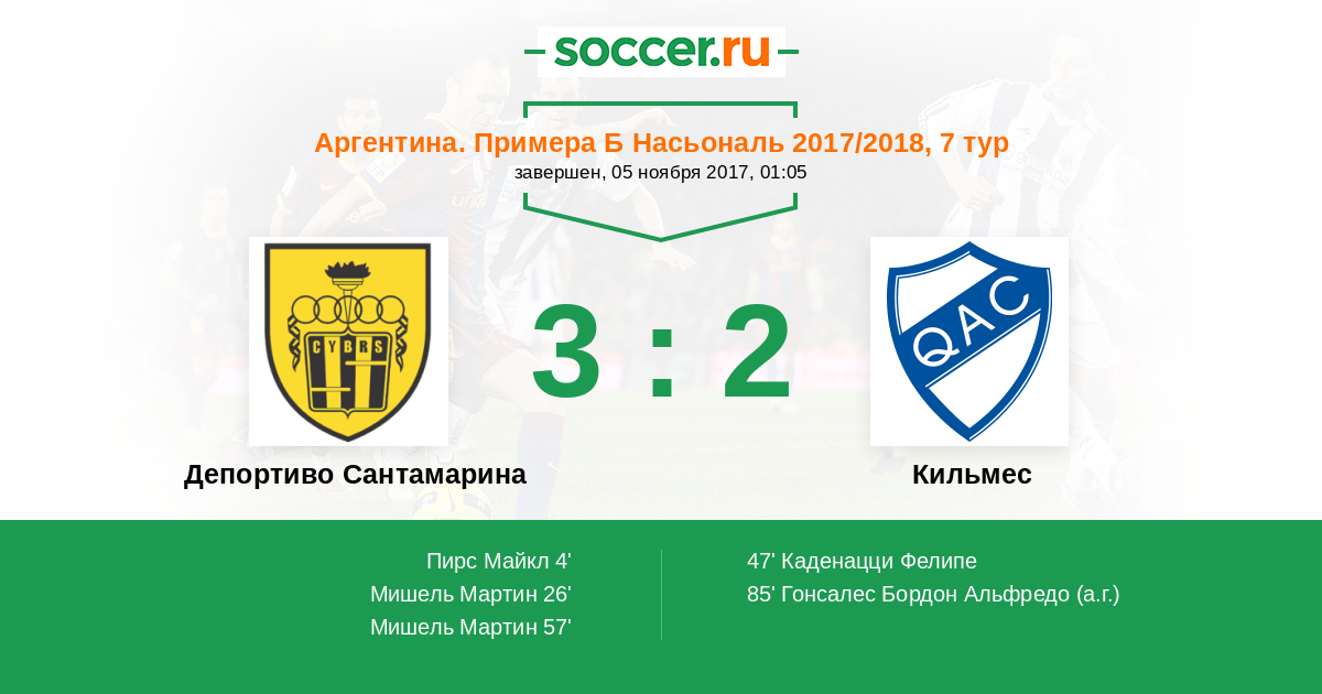 Протокол матча Депортиво Сантамарина против Кильмес