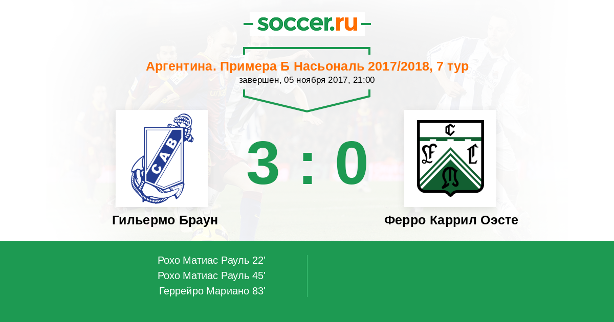 Протокол матча Гильермо Браун против Ферро Каррил Оэсте