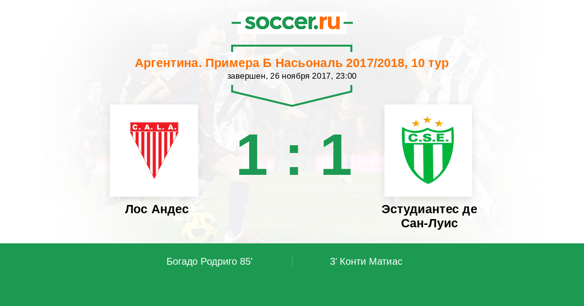Протокол матча Лос Андес против Эстудиантес де Сан-Луис
