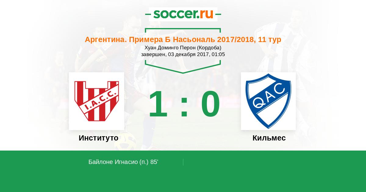 Протокол матча Институто против Кильмес