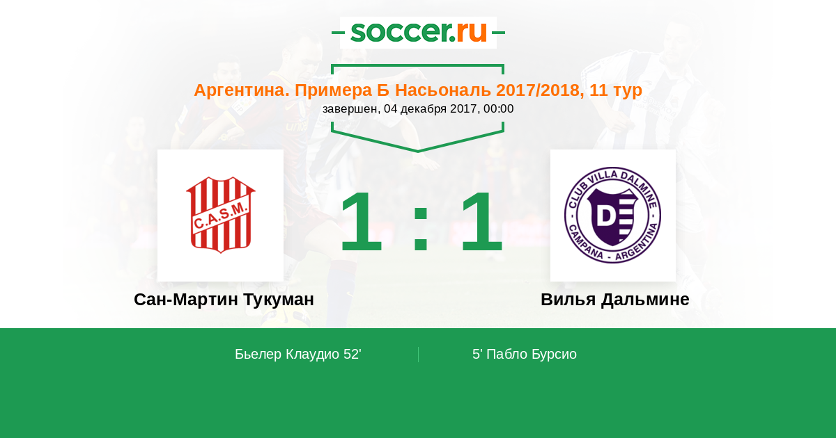 Протокол матча Сан-Мартин Тукуман против Вилья Дальмине