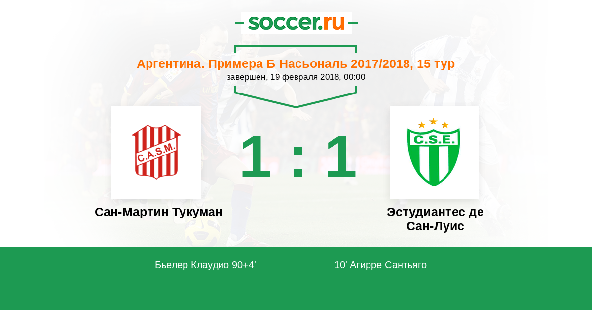 Протокол матча Сан-Мартин Тукуман против Эстудиантес де Сан-Луис