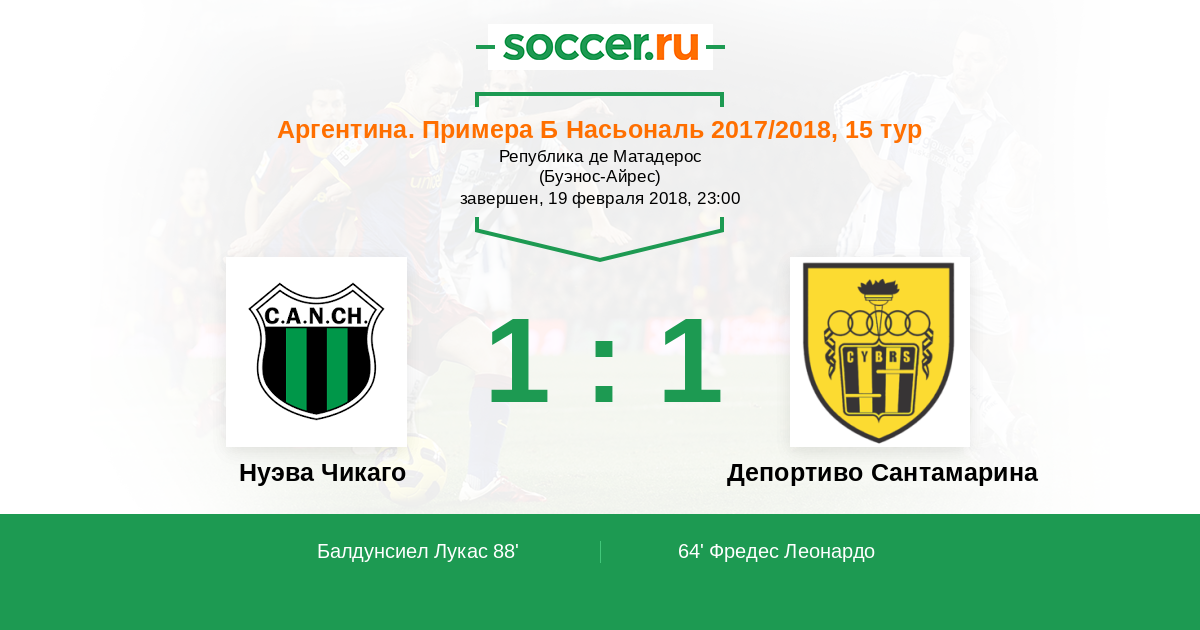 Протокол матча Нуэва Чикаго против Депортиво Сантамарина