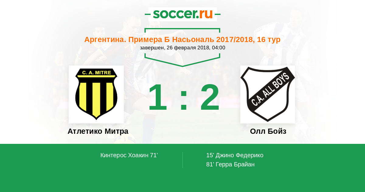 Протокол матча Атлетико Митра против Олл Бойз