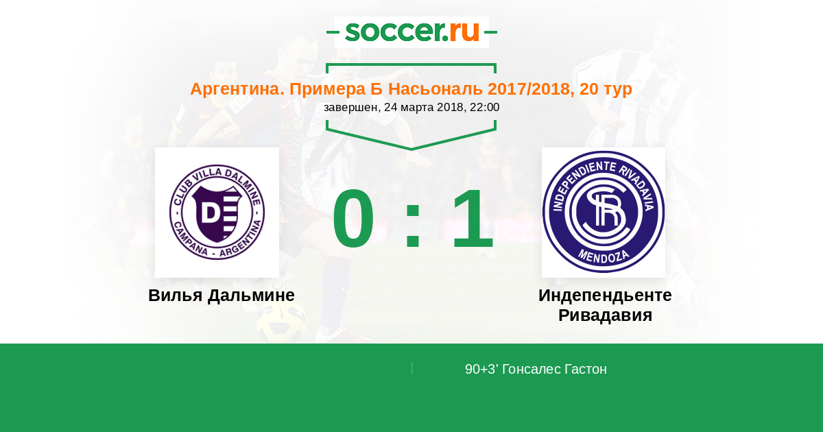 Протокол матча Вилья Дальмине против Индепендьенте Ривадавия