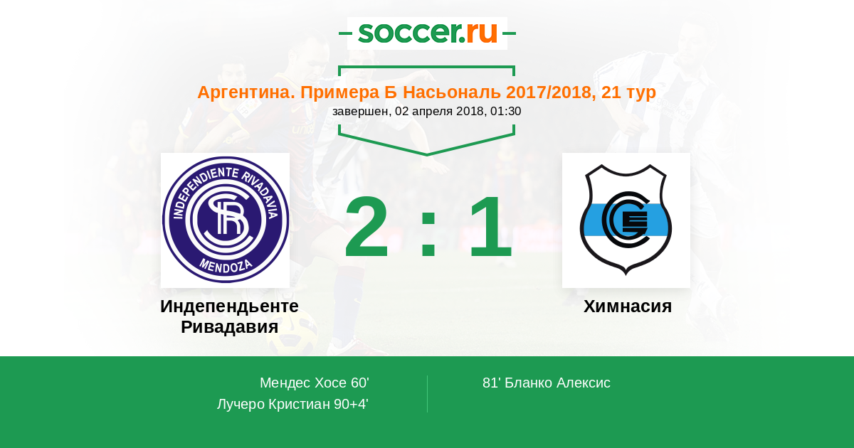 Протокол матча Индепендьенте Ривадавия против Химнасия