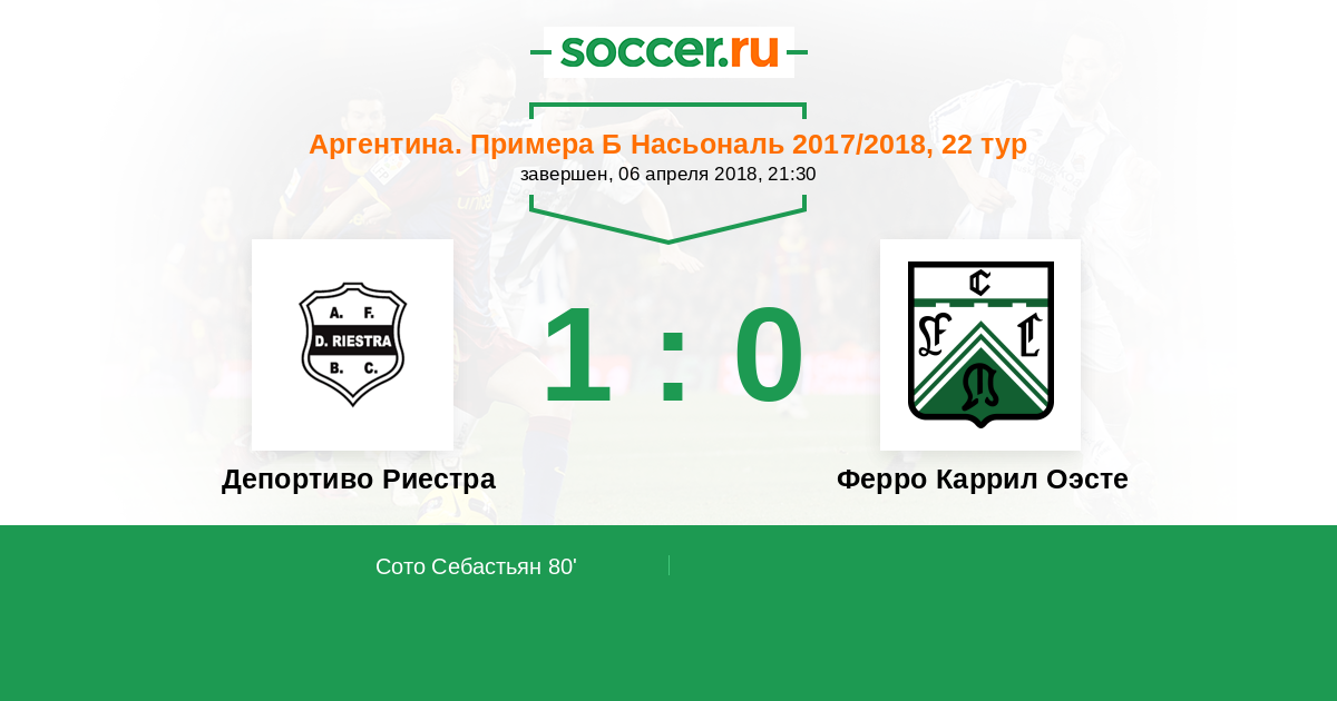 Протокол матча Депортиво Риестра против Ферро Каррил Оэсте
