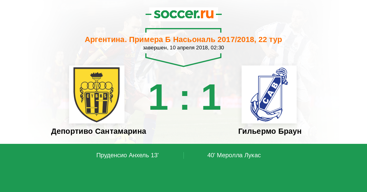 Протокол матча Депортиво Сантамарина против Гильермо Браун