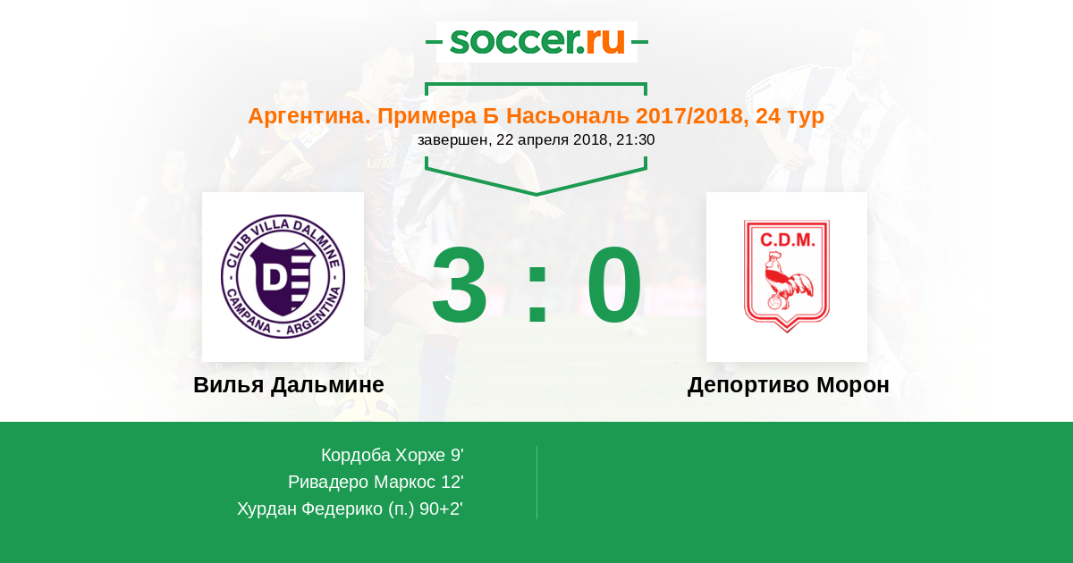 Протокол матча Вилья Дальмине против Депортиво Морон