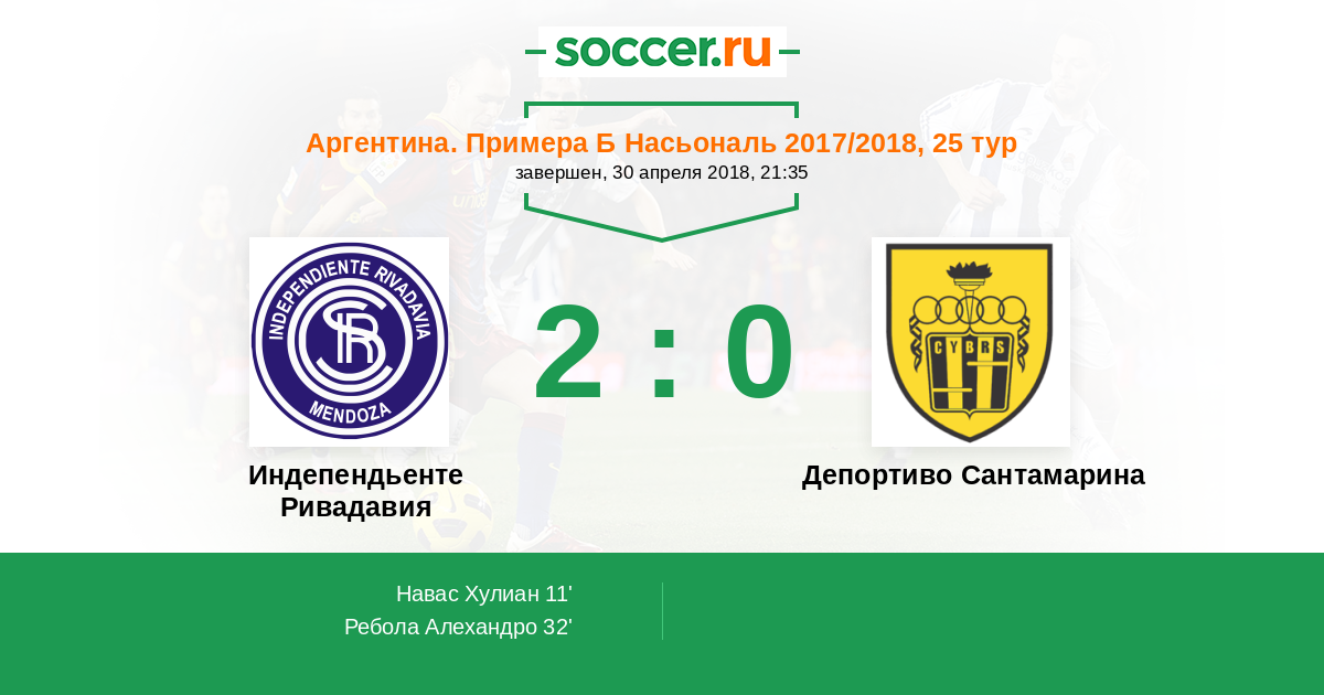 Протокол матча Индепендьенте Ривадавия против Депортиво Сантамарина