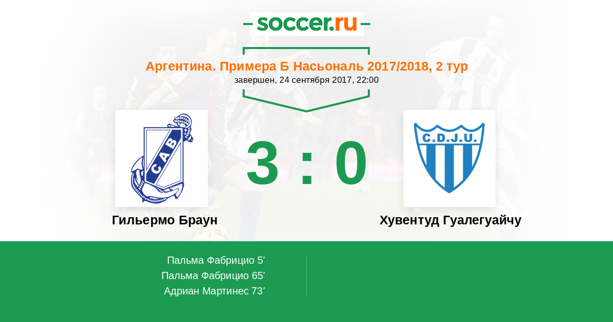 Протокол матча Гильермо Браун против Хувентуд Гуалегуайчу