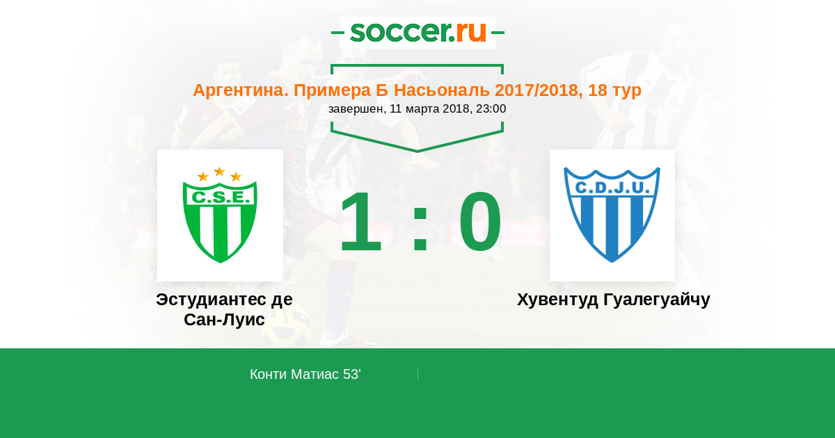 Протокол матча Эстудиантес де Сан-Луис против Хувентуд Гуалегуайчу