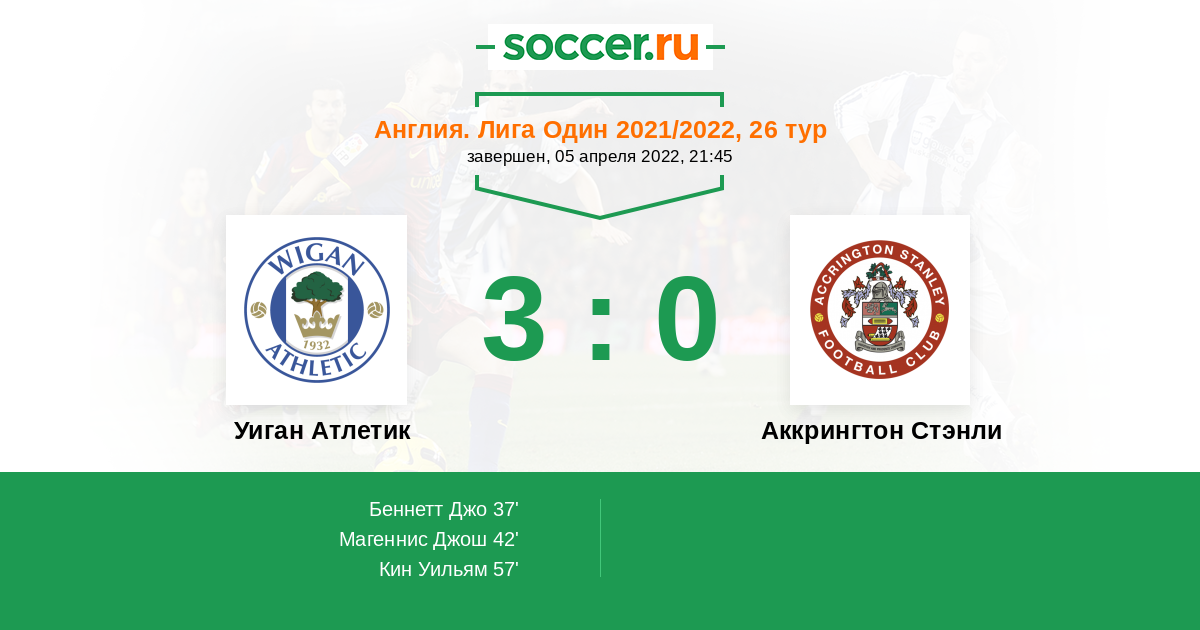Протокол матча Уиган Атлетик против Аккрингтон Стэнли