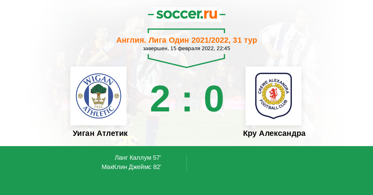 Протокол матча Уиган Атлетик против Кру Александра