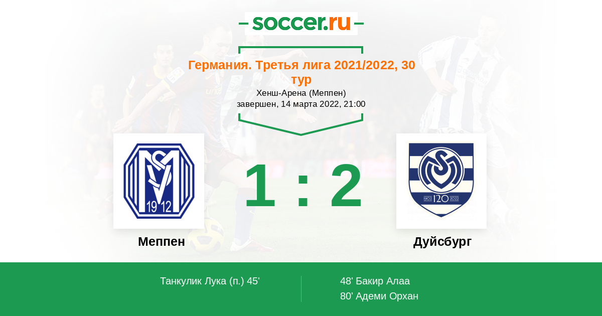Протокол матча Меппен против Дуйсбург