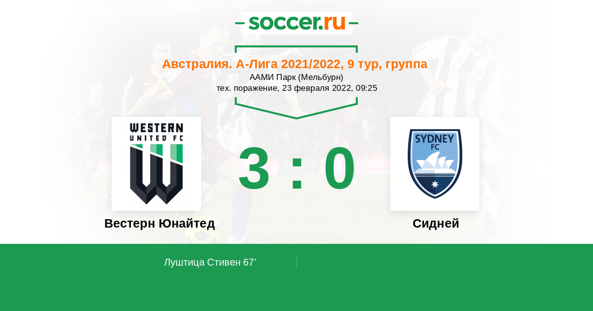Расстановка матча Вестерн Юнайтед против Сидней