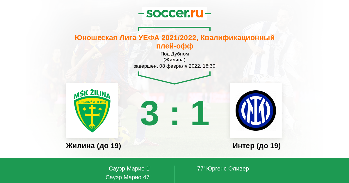 Протокол матча Жилина (до 19) против Интер (до 19)