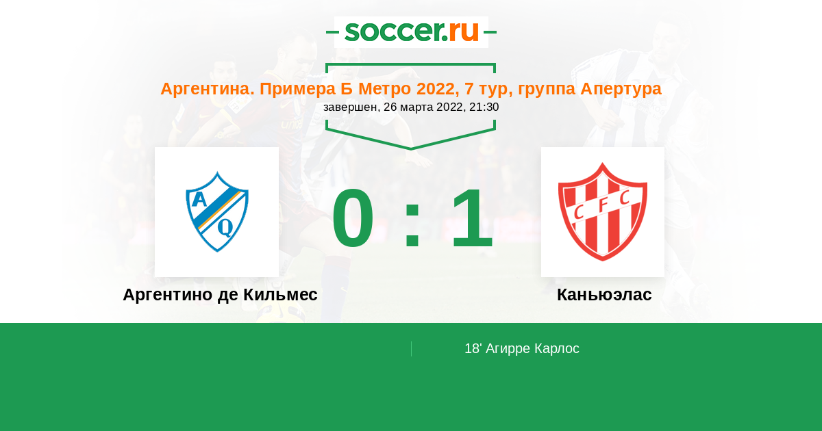 Протокол матча Аргентино де Кильмес против Каньюэлас