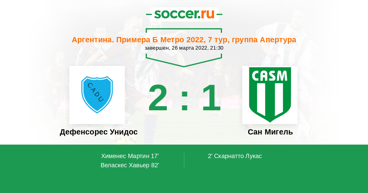 Протокол матча Дефенсорес Унидос против Сан Мигель
