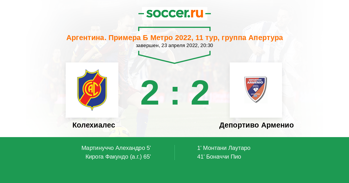 Протокол матча Колехиалес против Депортиво Арменио