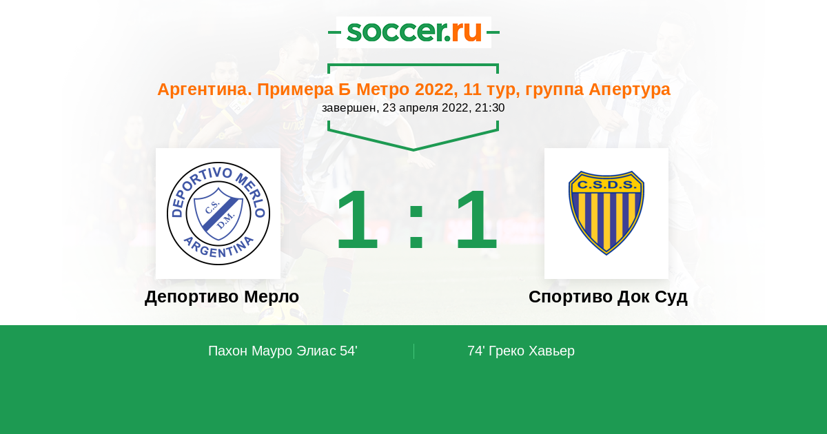 Протокол матча Депортиво Мерло против Спортиво Док Суд