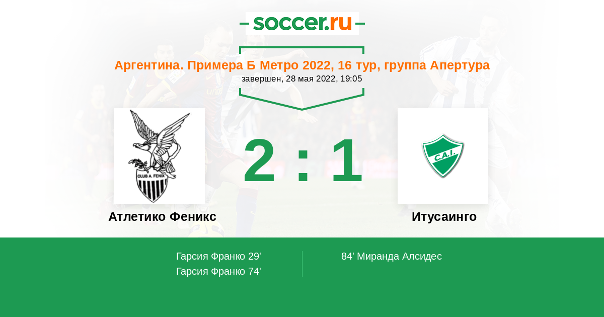 Протокол матча Атлетико Феникс против Итусаинго