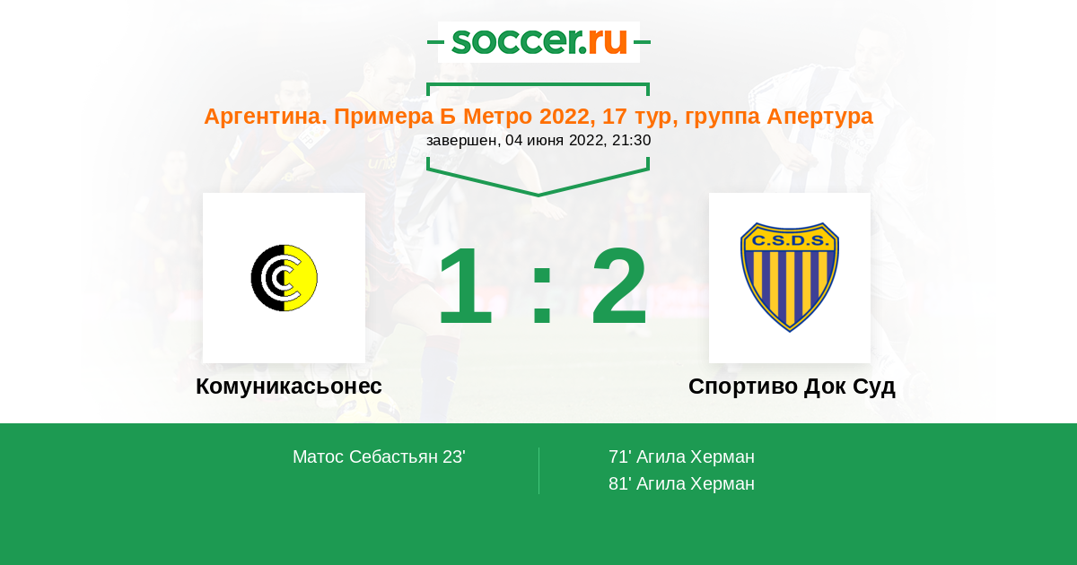 Протокол матча Комуникасьонес против Спортиво Док Суд