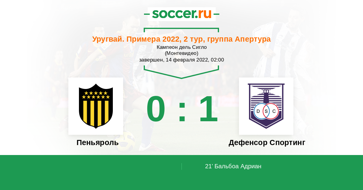 Протокол матча Пеньяроль против Дефенсор Спортинг