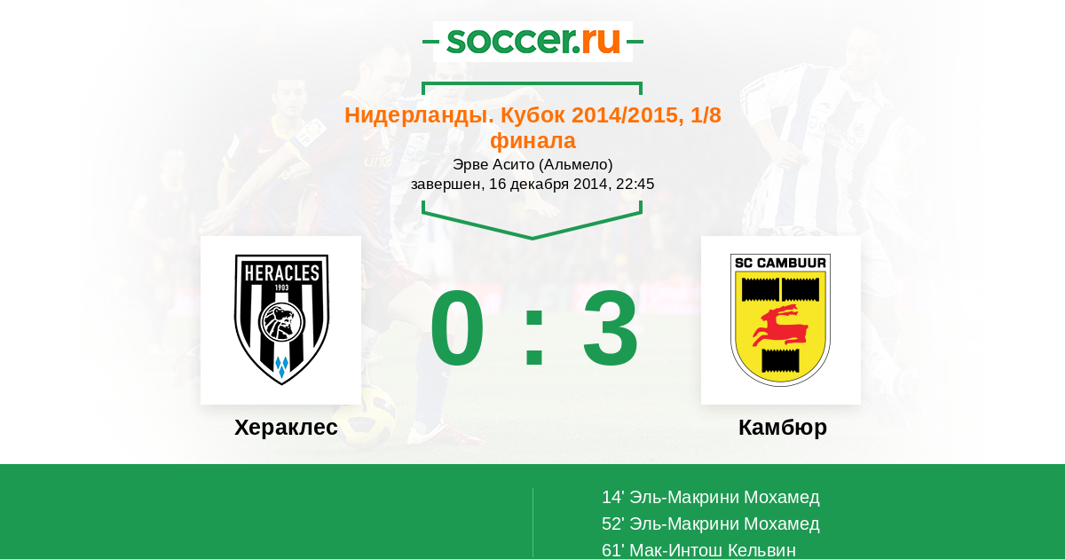 Протокол матча Хераклес против Камбюр